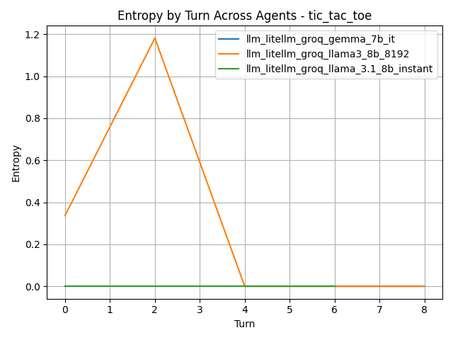 Entropy of reasoning distribution per turn for all agents in Tic-Tac-Toe.