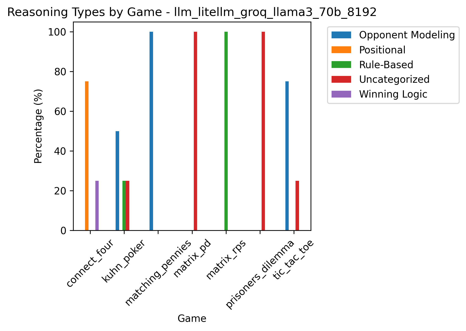 Distribution of reasoning types across all LLM models and games, showing distinct strategic thinking patterns.