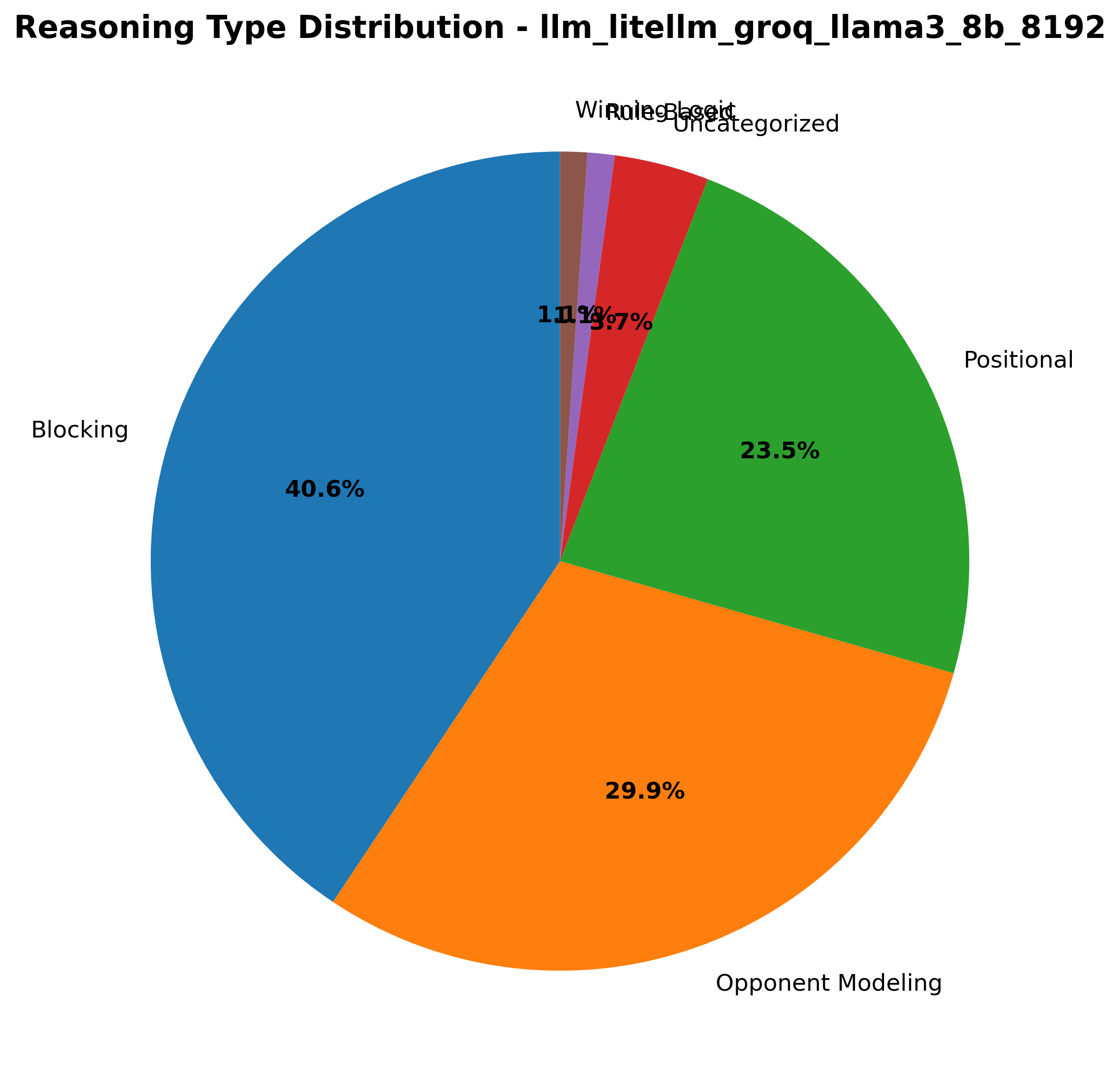 - Reasoning Categorization: Automatically classifies thinking patterns (Positional, Blocking, Winning Logic, Opponent Modeling, etc.)